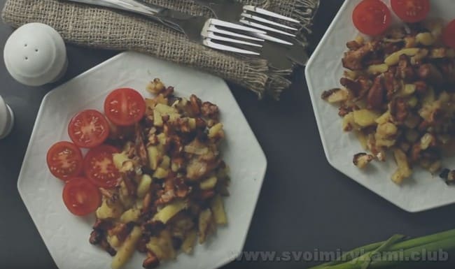 Ваша картопля з лисичками готова. Приємного апетиту!