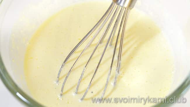 Збийте яєчні жовтки, натріть сир не тертці. Потім перемішайте, щоб вийшла однорідна маса.