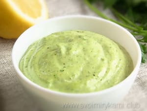 При бажанні в соус можна додати іншу зелень, наприклад кріп, базилік або естрагон. Замість огірків покласти оливки або каперси.
