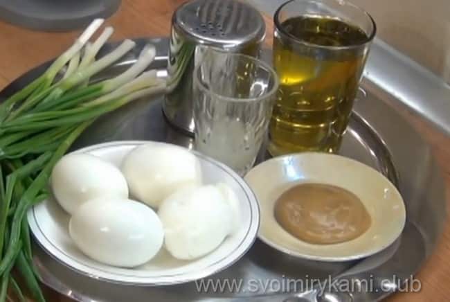 - Кухонна техніка: невелика миска або чаша від блендера, невелика каструлька для варіння яєць, блендер, ніж, обробна дошка.