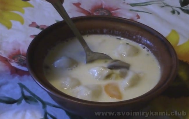• Суп з пельменями і плавленим сирком