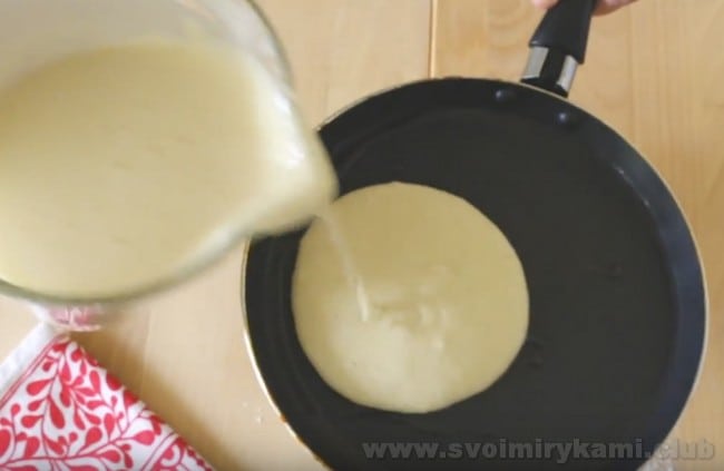 • Візьміть сковорідку за ручку, налийте трохи тіста і круговими рухами руки розподіліть його по поверхні сковороди.