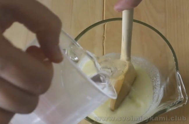 • Додайте гарячу воду і знову розмішайте.
