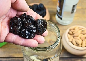 Спочатку готують закваску. Для цього склянку чорносливу подрібнюють. Спосіб подрібнення вибирайте самі. Це може бути ніж, м’ясорубка або блендер. Перемелені сухофрукти висипають у банку, заливають склянкою води кімнатної температури, засипають 3 великі ложки цукру, перемішують. Закваска з чорносливу повинна стояти 4 дні в теплому місці (+24°), щоб заграти.