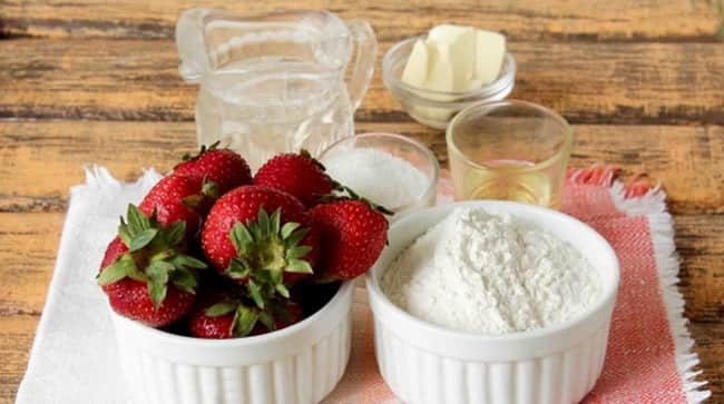 Тісто для вареників з полуницею готується на кефірі.