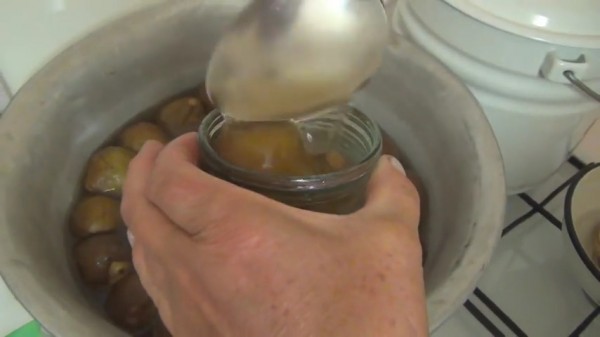 Готове варення розливають в гарячому вигляді в банки і закочується гвинтовими кришками, або кришками під ключ.