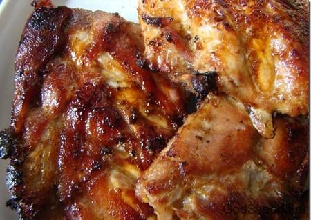 Запечені реберця готові. Вони виходять дуже м’якими, буквально самі відвалюються від кістки. Скоринка при цьому володіє цікавим, злегка солодкуватим смаком. Просто м’ясо є дуже смачно, але, крім основного рецепта рекомендуємо приготувати гарнір. Відмінним рішенням буде смажена або варена картопля або ж який-небудь овочевий салат. Головне, щоб гарнір не перебивав смак запечених реберець.