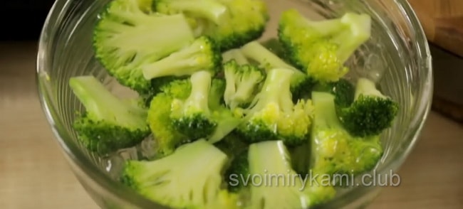 • Брокколі гарненько промиваємо, потім складаємо в каструлю.