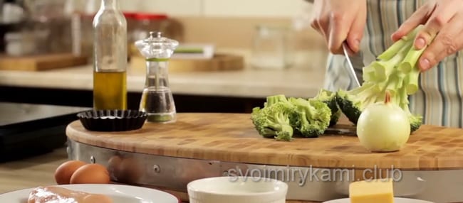 Для забезпечення ідеального результату заздалегідь підготуйте необхідні прилади, інструменти і посуд, які вам знадобляться в процесі підготовки і випічки запіканки з брокколі і курки: форму для пирога або торта металеву або тефлонову (у самому крайньому випадку візьміть силіконову) діагоналлю від 22 см, сковороду діаметром від 23 см, відріз пекарської папери довжиною від 35 см, каструлю з протипригарним покриттям об’ємом від 400 мл, кілька глибоких мисок ємністю від 300 до 900 мл, столові ложки, чайні ложки, сито середня, обробну дошку, рушники паперові, лляні і бавовняні, мірну чашу або кухонні ваги, дерев’яну лопатку і металевий вінчик.
