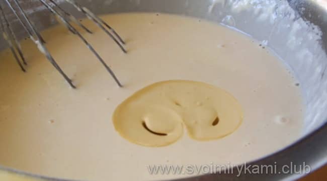 - Постарайтеся не допустити появи грудок в тесті. Якщо ви збиваєте тісто міксером або блендером, ця проблема майже завжди відпадає сама по собі. Якщо у вас є тільки віночок – теж не біда. Просто доведеться докласти трохи більше зусиль.