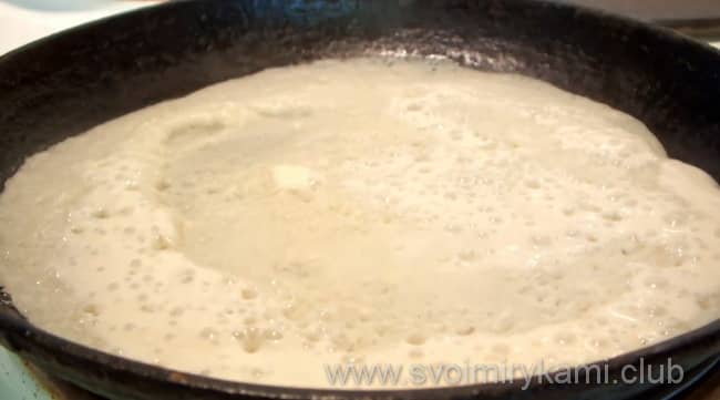 Змастіть сковороду тонким шаром рослинного масла – ця акція у нас одноразова, повторювати її не будемо, так як масла достатньо в самому тесті.