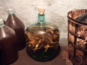 тирси або стружки, ванілін на кінчику чайної ложки, шматочок кориці і 5-7 шт. чорносливу.Кора дуба продається в аптеці, стружку і тирсу можна добути за допомогою ручного або електроінструменту. Деревне сировину попередньо прокип’ятити, щоб зменшити дія дубильних речовин. Всі інгредієнти змішати, тримати в темному місці, періодично збовтувати. Через 10-12 днів процідити, профільтрувати.