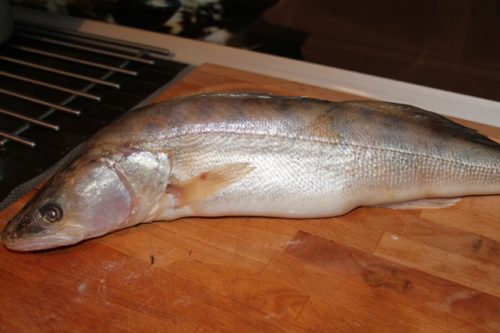 Очищену і випатрану рибу ретельно промивають зсередини і зовні, обов’язково приберіть чорну пліву в її нутрі. По всій площі тушки роблять надрізи від хребта до черева. Внутрішню і зовнішню частину посипають сіллю і перцем, мажуть вершковим маслом, при цьому потрібно намагатися нанести його так, щоб воно потрапило в розрізи.