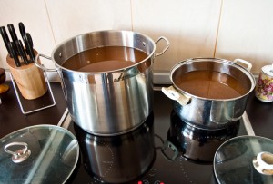 Коли маса добре забродить в неї заливають близько 10 літрів теплої кип’яченої води. Все ретельно змішують і знову ставлять в тепле темне місце на 2 доби.