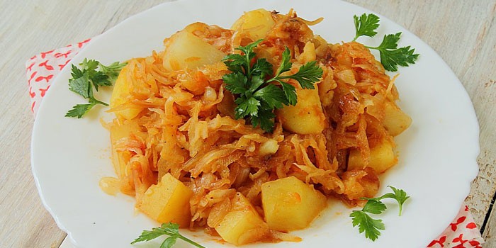 Тушкована капуста з картоплею