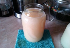 - Розчин з дріжджами з’єднують з суслом в бродильної ємності. Перемішують, залишають для бродіння в приміщенні з температурою 23-28С.