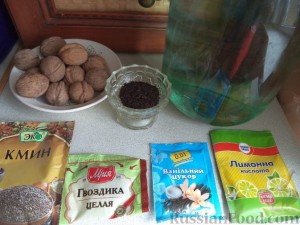 - спеції: перець запашний (5 горошин), лавровий лист, ванілін (10 гр),
