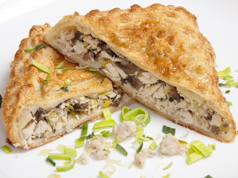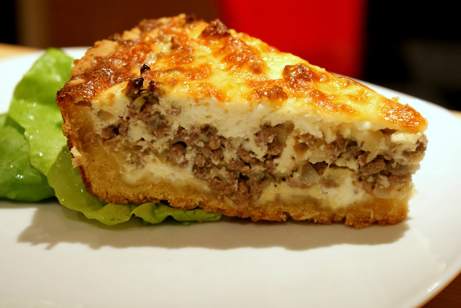 Цікавий варіант пирога з тестом, що складається з трьох яєць, половини склянки кефіру, склянки борошна, половини склянки розтопленого масла і розпушувача. Він незвичайний складом начинки, куди входять дві чи три сотні грамів м’ясного фаршу, стільки ж свіжих печериць, цибулина, сотня г стручкової квасолі, часник, сіль і перець.