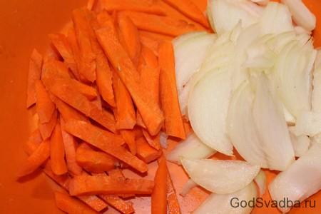 - На рослинній олії обсмажити моркву і цибульку п’ять хвилин.