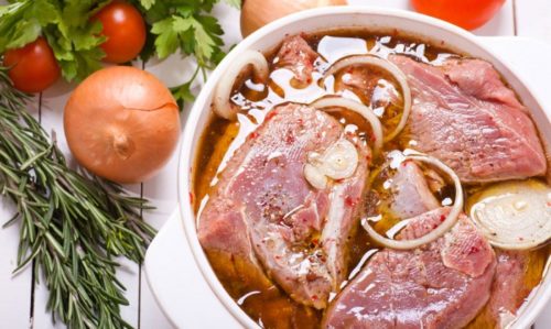 - Суміш наносять на шматок м’яса, а потім відправляють в холодильник маринуватися.