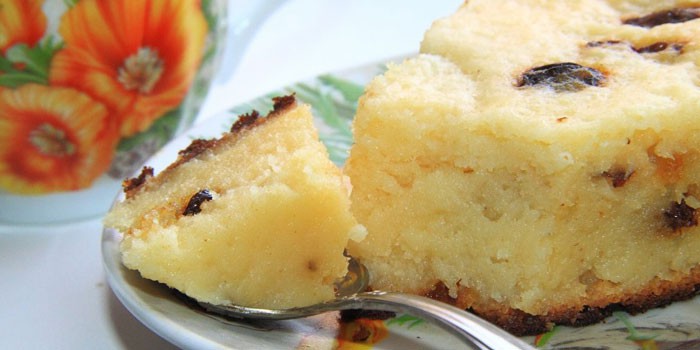Сирна запіканка з манкою і родзинками
