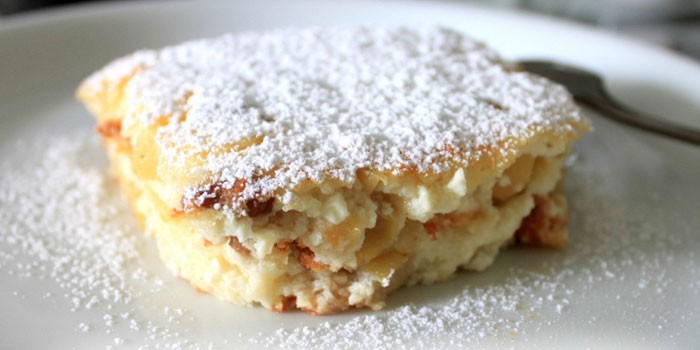 Інші компоненти додаються за смаком – цукор, курага, чорнослив. Крім сухофруктів добре додати консервовані ананаси, свіжі яблука, обмазати поверхню сметаною і посипати цукровою пудрою. Якщо беруться сухофрукти, їх потрібно попередньо замочити, а свіжі плоди згасити на сковороді для виходу зайвого соку – так блюдо збереже свою пружну форму, буде виглядати привабливо навіть на фото.