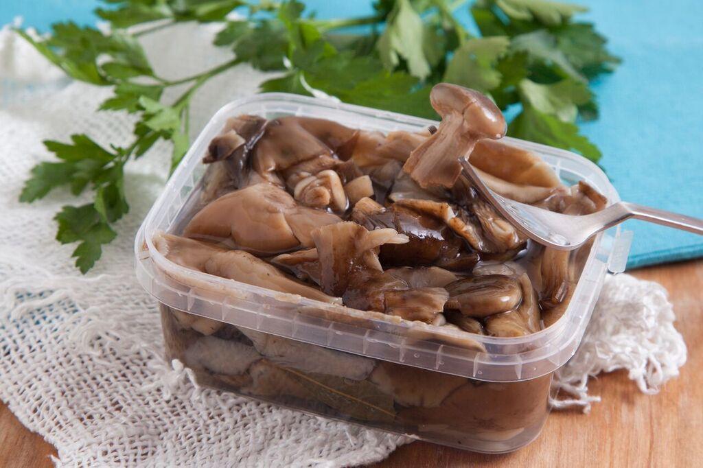 • Зверху поміщається важкий вантаж, опеньки прибирають в холодильник на тиждень, а потім розкладають по банках.