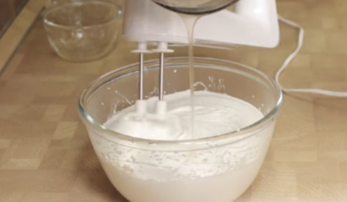 - Беремо міксер, збиваємо компоненти 20 хвилин до густоти і білосніжного кольору.