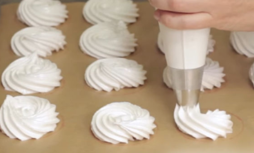 - Перекладаємо масу в кондитерський мішок і готуємо пергамент, куди і відсаджуємо солодощі.