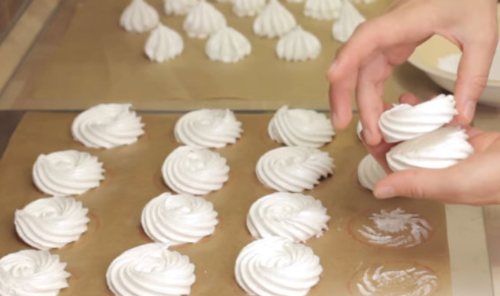 - Розкладаємо суміш в силіконові форми або пергаментного паперу, переставляємо на деко, відправляємо солодощі в духову шафу на 3 години, прогріваємо при температурі 90 градусів. Потім акуратно виймаємо з ємностей, охолоджуємо і подаємо до столу.