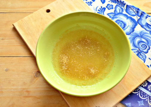 - Відразу замочуємо желатин, заливаємо його холодною водою, наполягаємо 15 хвилин. Кілька раз перемішуємо, щоб суміш не злиплась.