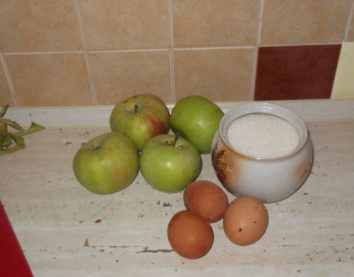 - Яблучну суміш перемішуємо з цукром білками.