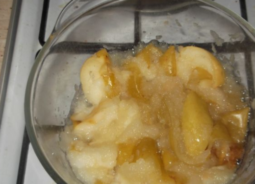 - Готуємо яблучне пюре, для цього нарізаємо і перетираємо фрукти до густоти і охолоджуємо.