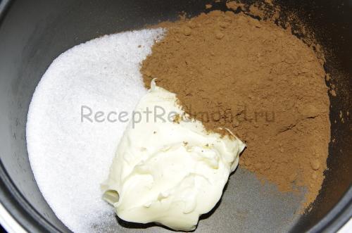 • На режимі гасіння розчиніть масло і змішайте його з какао і цукром.