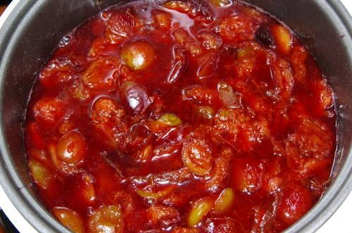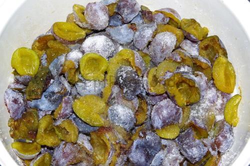 • Засипте сливу половиною всього цукру і нехай вона пустить сік. Норма цукру визначається виходячи з ваших смакових пристрастей, але при пропорції 1:2 присутня легка кислинка. При співвідношенні 1:1, я думаю, вона буде не так яскраво виражена, тому вирішувати, скільки класти цукру, тільки вам.