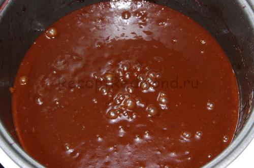 • Змішайте шоколад і сливу і доведіть все до кипіння на режимі випічка.