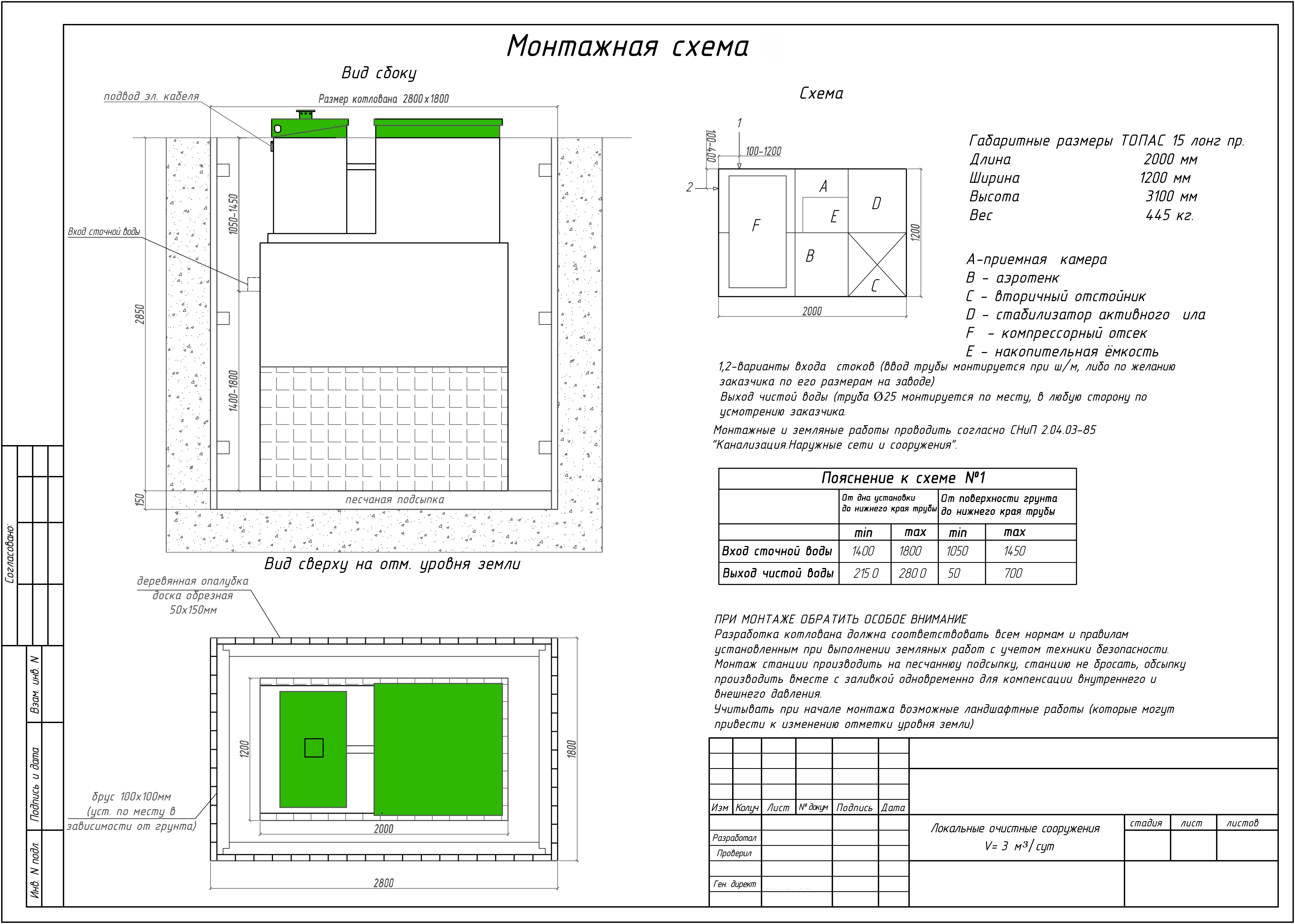 Схема пристрою стандартної каналізаційної системи (на прикладі «Топас»)