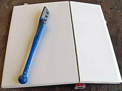 - акуратно натискаємо на рукоять: плитка розламується на дві частини.