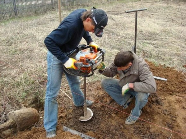 Коли буде готова яма під фундамент, помістіть в неї стійки строго по рівню і вертикально, і далі засипте спеціальним розчином з цементу, щебеню і піску.