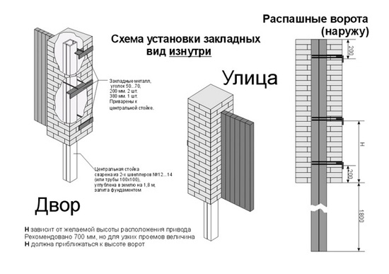 Якщо металеві стовпи на ворота виступають в ролі стійок, то кожен завіс повинен бути приварений саме до них.