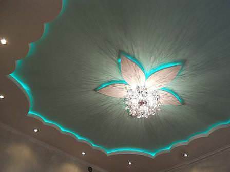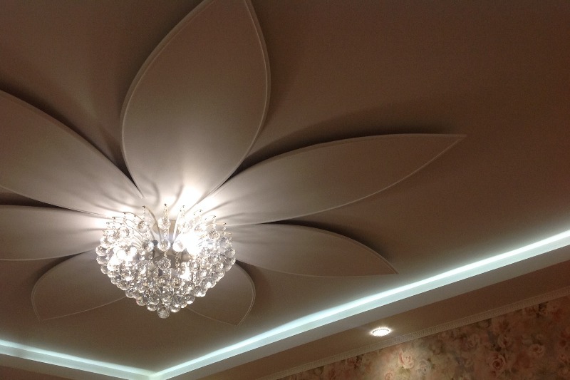 Для дизайну невисоких стель більш підходящим буде вибір конструкції квітки з кінчиками пелюсток округлої форми (як у ромашки або троянди). Гострі пелюстки в даному випадку можуть не доповнити, а зіпсувати інтер’єр, але в холах з високими стелями така модель виглядає незрівнянно.