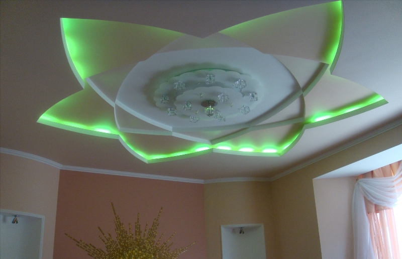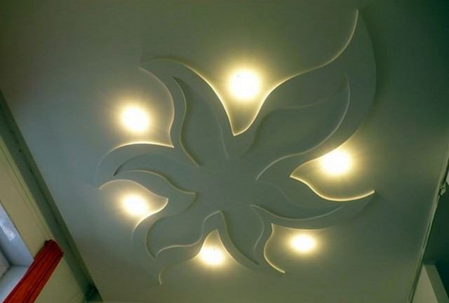 Галерея: декоративний квітка з гіпсокартону на стелі (20 фото)