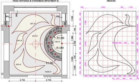 Спочатку створюється масштабувати креслення бажаного декору з урахуванням розміру та форми стелі. Складність тут буде не в створенні самого креслення, а в перенесенні задумки на папір. Якщо є сумніви при виборі місця для розміщення квітки, краще поступити наступним чином: вирізати з паперу квітку бажаної форми в зменшеному розмірі, накреслити схему стелі і шляхом підбору (прикладаючи квітка в різних місцях) визначити місце, де квітка буде виглядати найбільш виграшно. Або намалювати стеля в будь відповідною комп’ютерною програмою і пересувати створений квітка мишкою.
