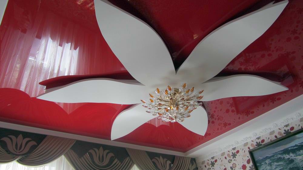 Якщо декоруємі стеля нижче 3 м, то багато рівнів робити не варто: все своє витонченість конструкція втратить, візуально буде тиснути на приміщення і здаватися грубою. До того ж, у невеликій кімнаті великий квітка буде робити її ще менше.