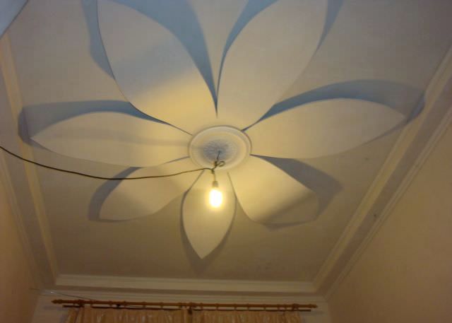 Для невисоких стель (2,3 – 2,5 м) краще створити плоске прикраса, зробивши його ажурним, вибравши правильний вигляд конструкції і кількість пелюсток. Так, наприклад, непоганим рішенням стане квітка, має правильну геометричну фігуру, де в якості пелюсток ? плавно вигнуті радіальні лінії. Кількість таких пелюсток може змінюватись в залежності від стельових комбінацій.