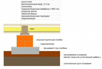 Пристрій підлоги по лагам проводиться як по земляному основи, так і по перекриттях будівель.