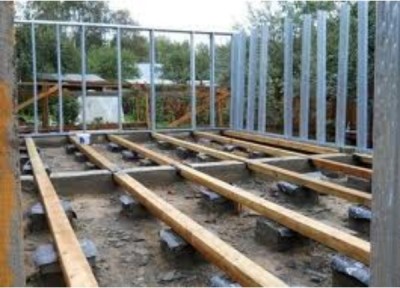 Існує два способи укладання лаг на бетон.
