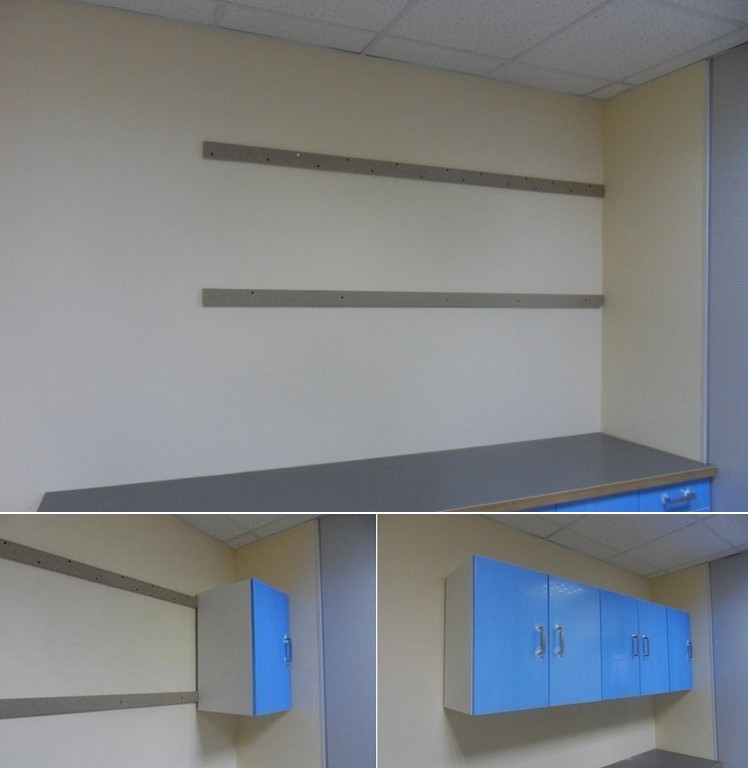 Зазвичай шафи вішаються на шурупи через алюмінієві вушка, він знаходиться досить високо, і ці кріплення не видно.