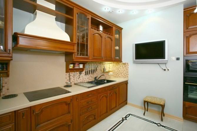 Отже, обставини склалися таким чином, що на кухонній стіні обов’язково повинна бути стінова панель з гіпсокартону, дає ідеально рівну поверхню. І саме на цій стінової панелі повинен висіти масивний шафа для посуду, в якому буде розташована різноманітний посуд, баночки з приправами, інші кухонні приналежності.