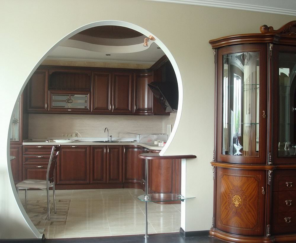 Хтось бажає залишити традиційну двері на кухню, захищає всі інші приміщення від запахів їжі, що готується, зайвої вологи і т. д., а комусь імпонує арочна конструкція, зведення якої тягне за собою масу додаткових витрат.
